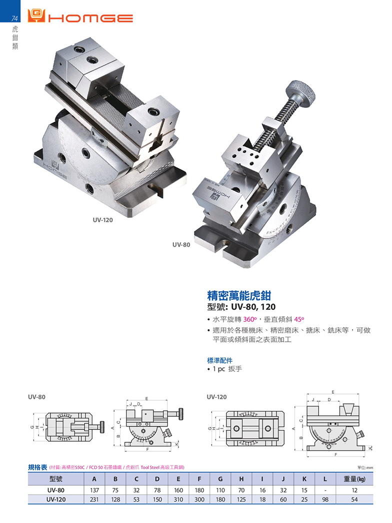 臺灣恒吉恒佶HOMGE精密萬能虎鉗UV80 UV120